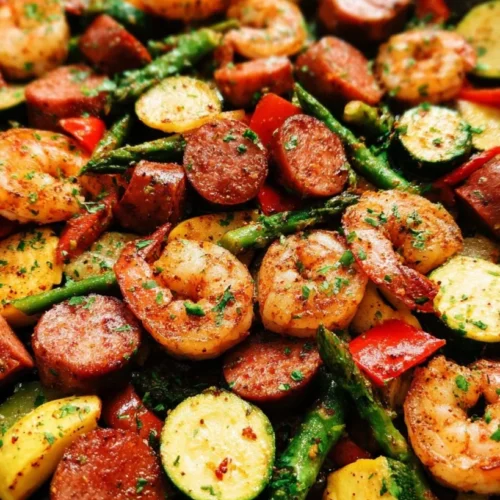 This Cajun-inspired dish is a seasoned dance of bold flavors and vibrant colors, which is part of what makes it so appealing. First off, using fresh shrimp ensures that every bite is juicy and tender, while the sausage adds that indispensable smoky element—especially if you can find one seasoned well. And then there’s the array of vegetables: zucchini, yellow squash, and bell peppers—they not only bring bright hues to the plate but also a satisfying crunch that complements the textures of the seafood and sausage splendidly.