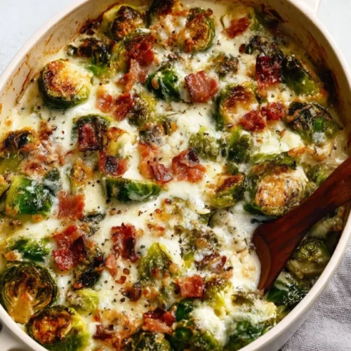 This creamy Parmesan Brussels Sprouts Gratin with Bacon is a comforting and elegant dish that transforms Brussels sprouts into a delicious, warm dish perfect for any occasion.