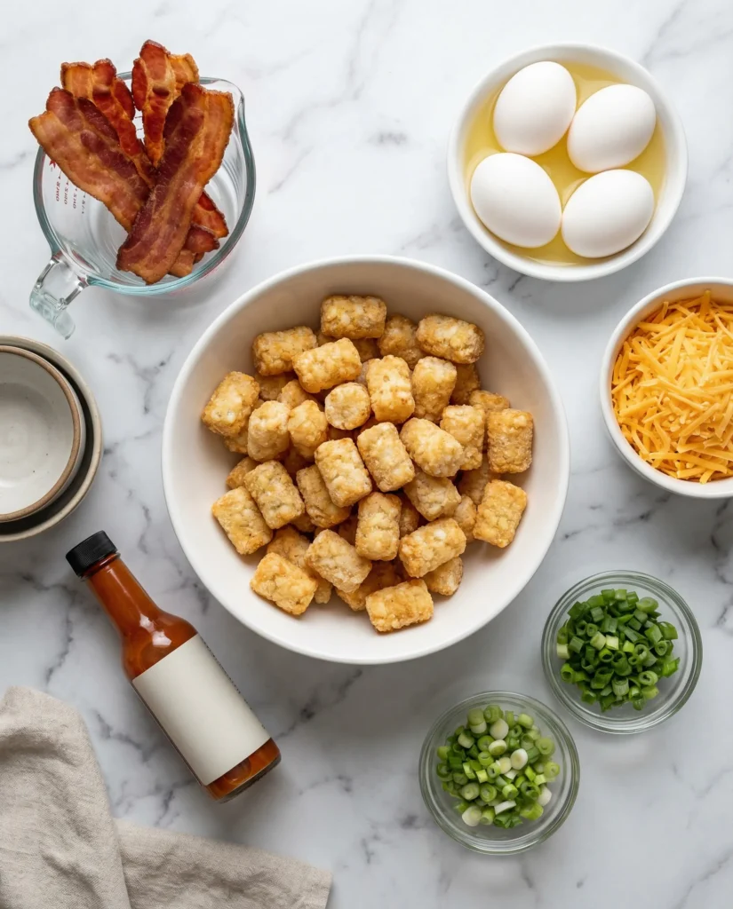 - 1 bag Frozen Tater Tots: These beauties are your crispy base. Using frozen ones means you can whip this up without a fuss and still get that texture we crave.
