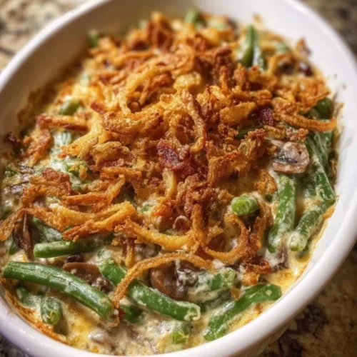 No matter the occasion, this Irresistible Campbell’s Green Bean Casserole is bound to bring smiles and satisfaction. It’s a comforting dish that not only highlights the beauty of simple ingredients but also brings a certain joy to the table that warms the heart. I encourage you to try it out, maybe even put your own spin on it. Your kitchen is your canvas, after all. Happy cooking, and I look forward to hearing how it turns out!