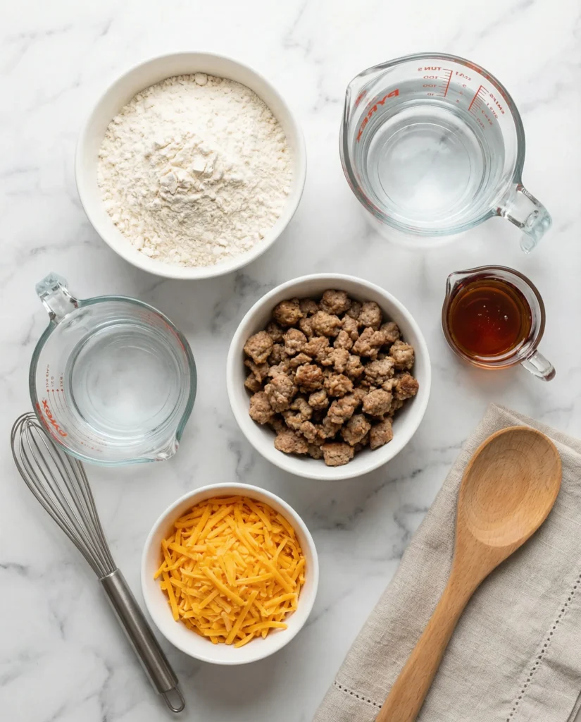 - Now, fold in the cooked sausage, shredded cheddar cheese, and maple syrup. It should look and smell fantastic—the sweetness mingling with the savory sausage is what dreams are made of.
