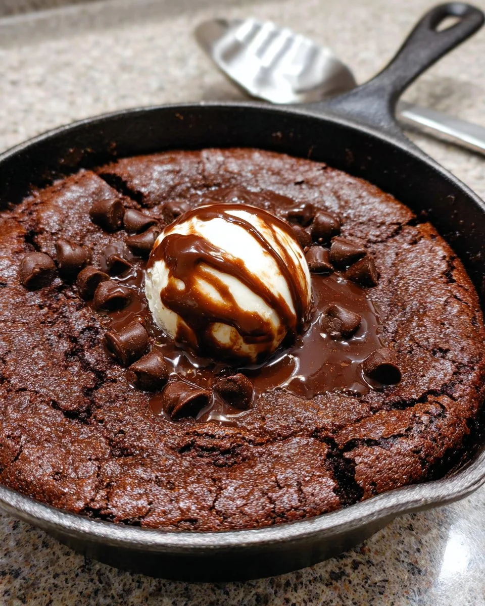 When it’s time to enjoy your skillet brownie, I recommend serving warm with a generous scoop of vanilla ice cream on top—it’s a classic for a reason. The contrast between the chilled ice cream and warm brownie creates a delightful experience. Alternatively, a drizzle of chocolate or caramel sauce can elevate every bite. For those wanting to lighten it up, a handful of fresh berries or a dollop of whipped cream adds a refreshing tang that cuts through the richness perfectly.