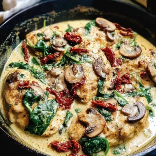 Skillet Creamy Chicken Mushroom Florentine isn’t just about flavor—it’s about balance. The chicken is seared to a golden brown, providing a lovely texture that contrasts beautifully with the silky cream sauce. Add to that the earthiness of mushrooms and the bright notes from spinach and sun-dried tomatoes, and you’ve got a dish that’ll have you dreaming about it long after the plates are cleared.