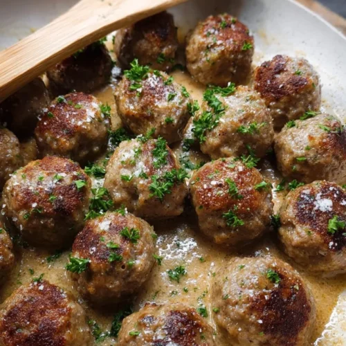 If you find yourself with leftovers—though believe me, they’re a rarity—no worries! Store the meatballs and gravy in an airtight container in the fridge for up to three days. They do reheating quite beautifully. When it’s time to warm them up, do so gently on the stovetop over medium heat or using a microwave. If the gravy thickens too much, add a splash of broth or cream to loosen it up.